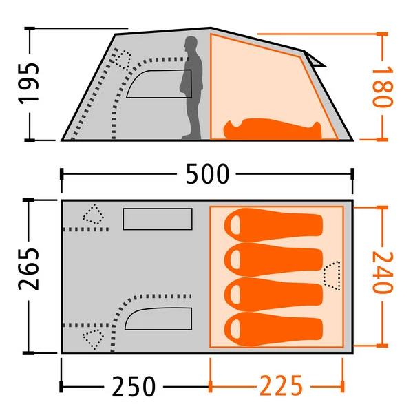 Ausgelegt für ausgedehnte Familienurlaube, bietet das Errigal Family ausreichend Platz für 4 Personen. Viele schlaue Details, wie die dunkle Schlafkabine, machen den Campingurlaub besonders erholsam.
