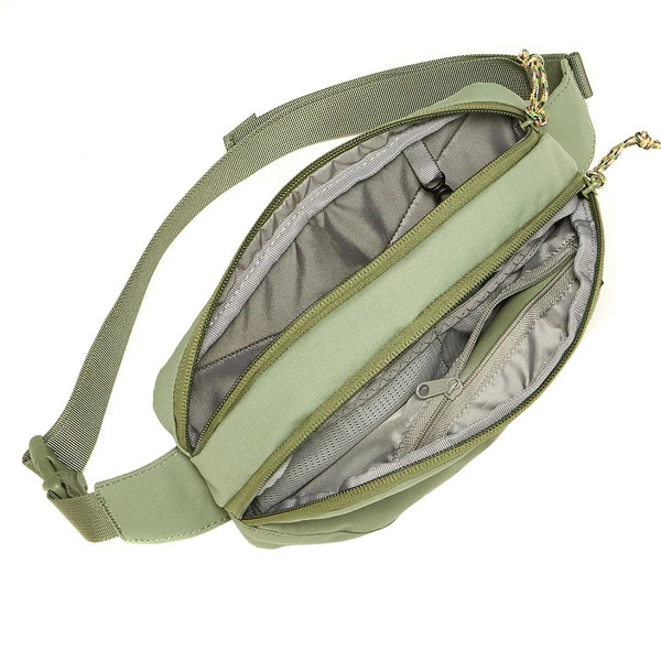 Die Faresta bietet sehr gute Organisationsmöglichkeiten auf kleinem Raum. Die robuste, wasserabweisende Hüfttasche ist obendrein aus recycelten PET-Verpackungen gefertigt.